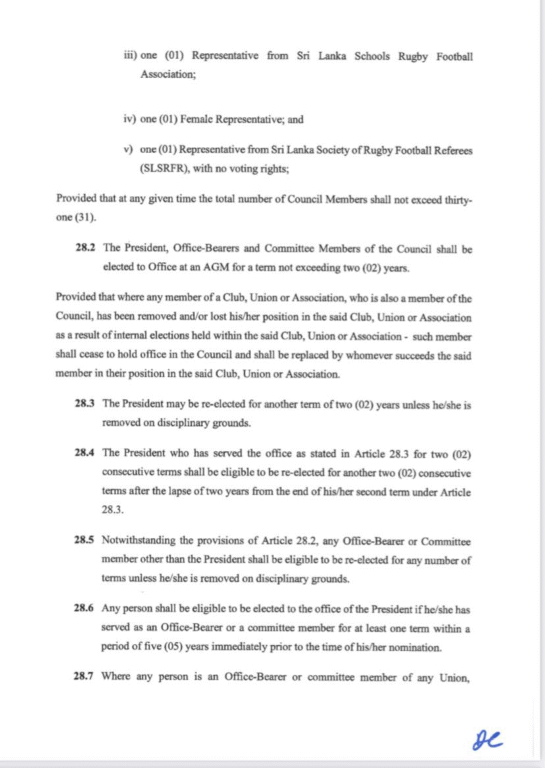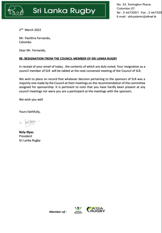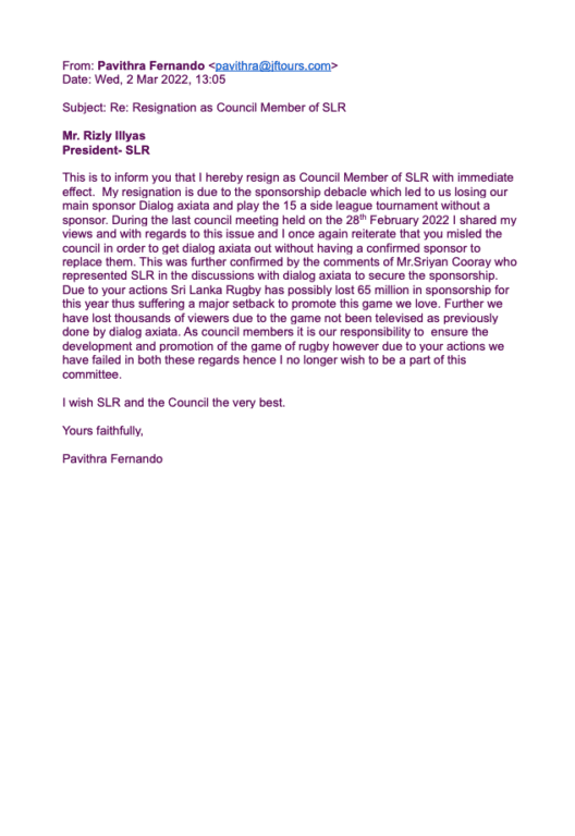 ද මෝනිං ටෙලිග්රාෆ් වෙත ලැබුණු තොරතුරු අනුව, ශ්රී ලංකා රග්බි ව්යවස්ථා නියමයන් අනුව ප්රනාන්දු තරඟ කිරීමට නුසුදුසුය. ඒ අනුව සභාපති ධුරයට ඉදිරිපත් වන්නා විසින් SLR විධායකයේ සම්පූර්ණ වසර දෙකක් සේවය කළ යුතුය. කෙසේවෙතත්, පවි 2022 මාර්තු මාසයේදී ඉල්ලා අස්වීමට පෙර රිස්ලි ඉලියාස්ගේ සභාපති කාලය තුළ වසරක් සහ මාස හයක් පමණක් සේවය කළේය.