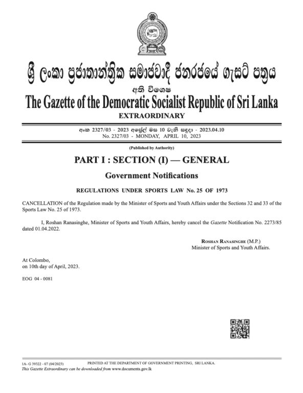 අවුරුද්දකින් පසු, 2023 අප්රේල් 11 දින, නව අමාත්ය රොෂාන් රණසිංහ එම ගැසට් නීතිය අවලංගු කළද, ඒ සම්පූර්ණ ප්රතිසංස්කරණයක් නොවීය. මේ හේතුවෙන් 2020–2022 කාලයේ කමිටුවේ කිසිදු සාමාජිකයෙකු අවශ්ය වසර දෙකක සේවය සම්පූර්ණ කළේ නැත.