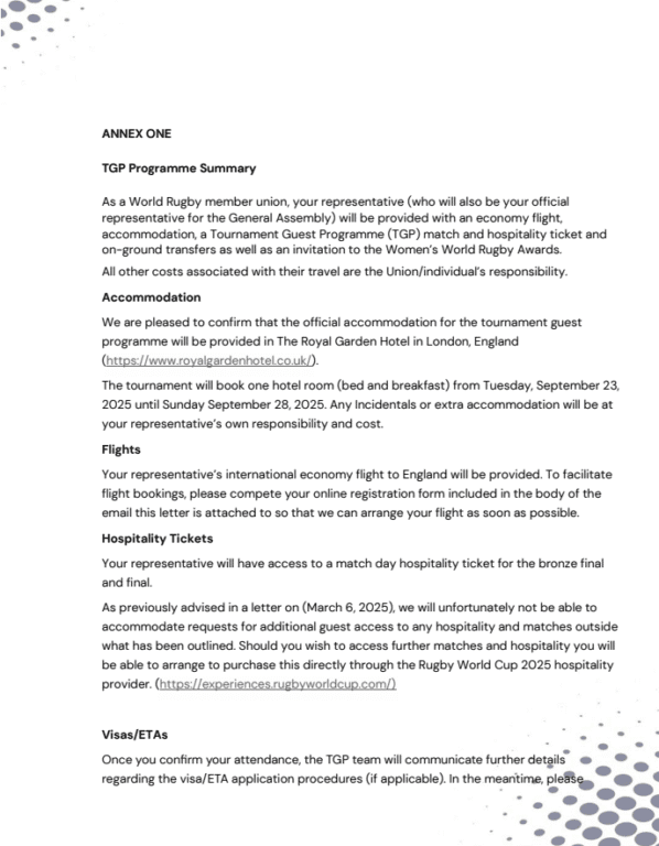 මරිකාර් රග්බි සංගමයේ ජාතික රග්බ් කණ්ඩායම් නිසි බලදාරියා තනතුරට පත් කල දවසසේ සිට ජාතික කණ්ඩායම මේ දක්වා කිසිදු තරගයක් ජයගෙන නොමැති අතර ඒ සදහා කෘතගුණ සැලකීමක් වශයෙන් ලෝක රග්බ් සංගමයේ මහාසබාවට සහබාගි වීමට නම අනුමත කර යැවීමයි