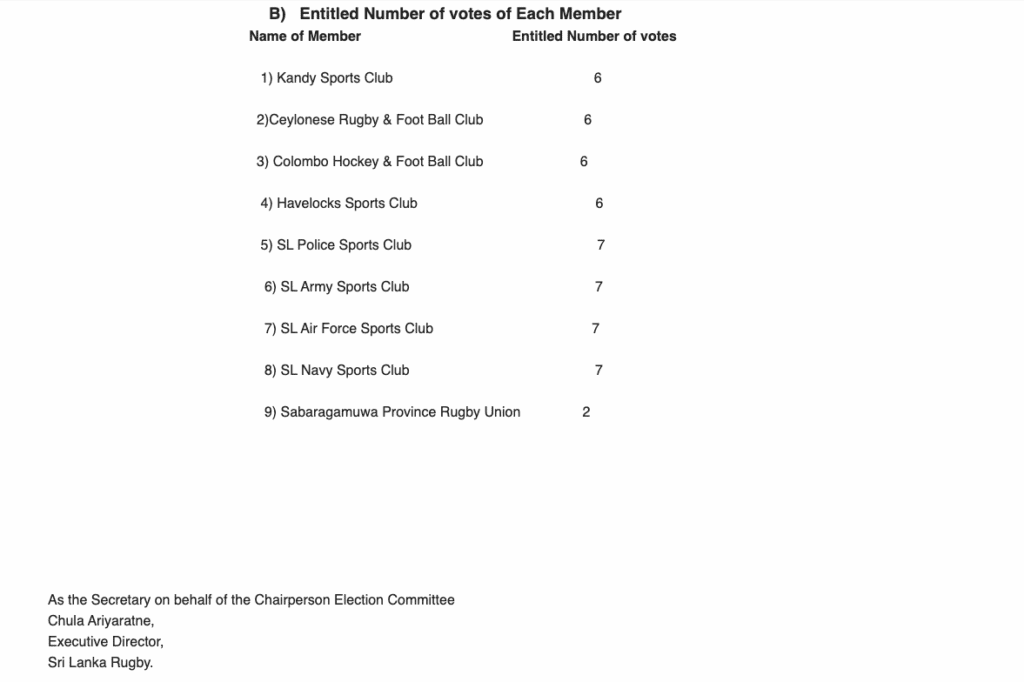 ශීර්ෂ පාඨය: මැතිවරණ කමිටුව පොලිස් SC සහ ත්රිවිධ හමුදාවට ඡන්ද හත බැගින් ලබා දුන් අතර, ක්රීඩා සමාජයක ඡන්ද බලය හයට සීමා කරන ව්යවස්ථාව අමු අමුවේ නොසලකා හැරියේය.